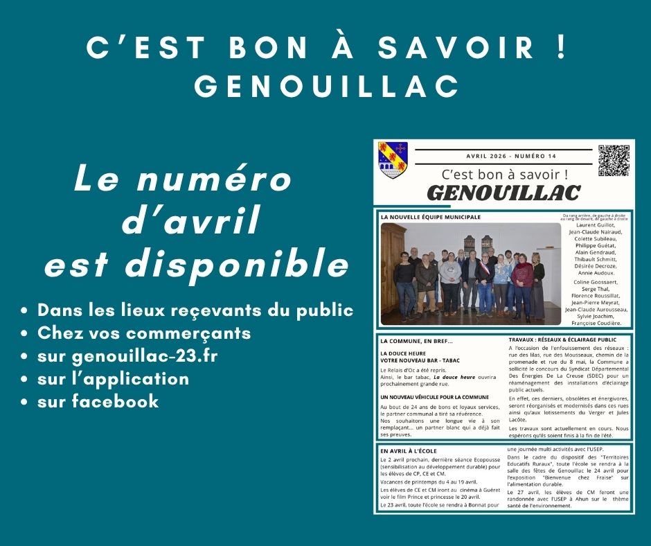 C’est bon à savoir ! Genouillac d’avril 2026, votre numéro de…
