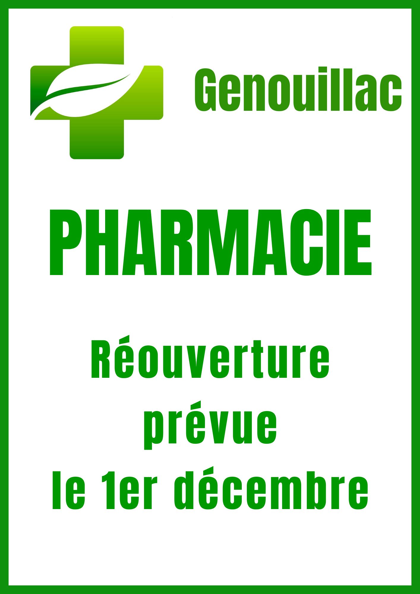 La réouverture de la pharmacie de Genouillac est prévue le 1er décembre.