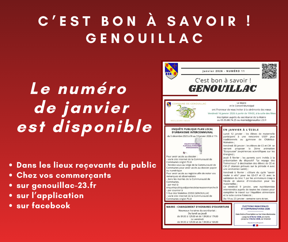 Pour retrouvez votre C’est bon à savoir ! Genouillac de janvier 2026,…